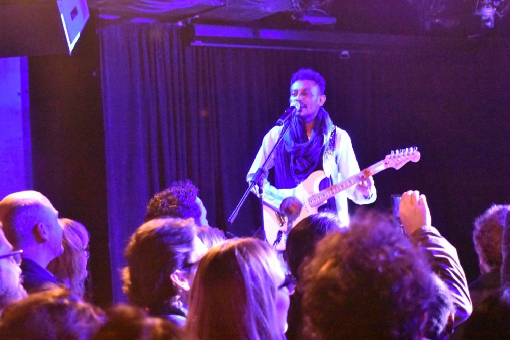 Nigerien guitar wizard Bombino played (le) Poisson Rouge in Manhattan, Wed., March 20 to an ecstatic and welcoming crowd. The band ripped through songs from Bombino's latest record, Deran, as well as his back catalog, starting slowly and gradually building until the whole of LPR’s room turned into a dance floor.