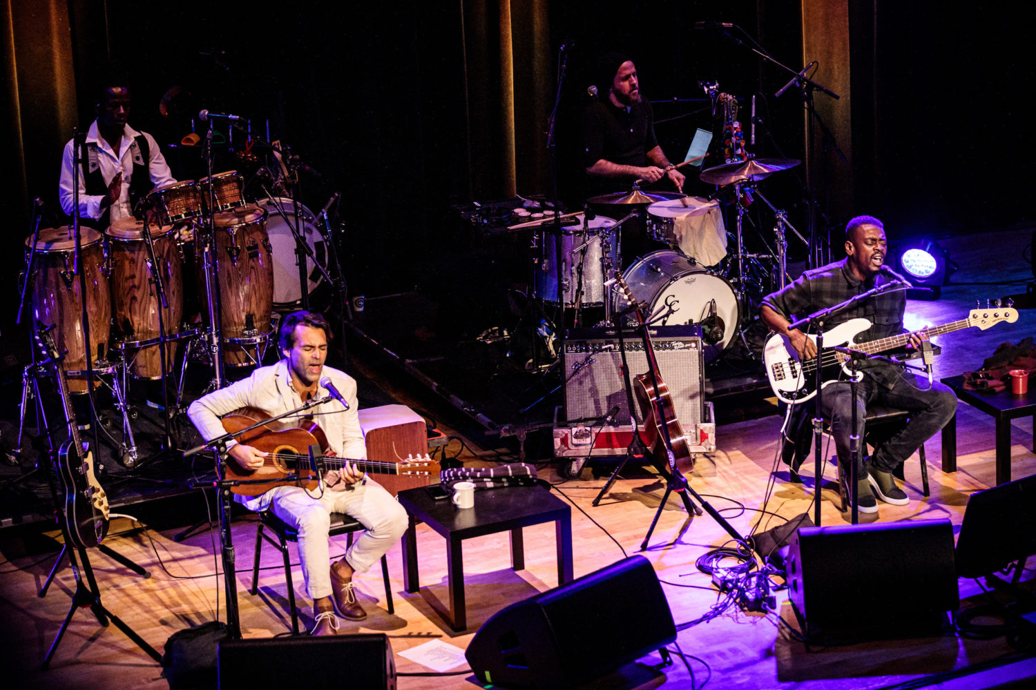 Anat Cohen and Choro Aventuroso started the evening off with a playful sampling of Brazilian style, mostly choro as the name and instruments imply—accordion, clarinet, pandeiro and seven-string guitar. Though intricate and musically sophisticated, choro at its best sounds playful, and the players seemed to be having a blast, trading towering solos between clarinet and accordion, while Sergio Krakowsi, who was featured on our “Bolsonaro Is and Isn't” Afropop CloseUp, evoked whole percussion ensembles with just his pandeiro.