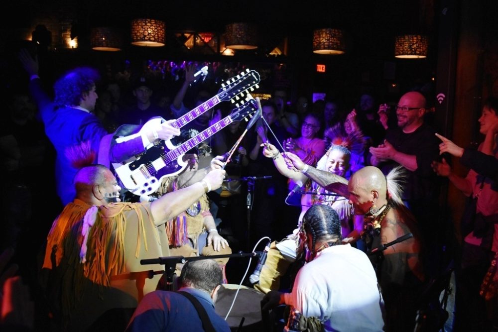 The guitarist Yonatan Gat teamed up with an Algonquin Native musical group, the Eastern Medicine Singers, on his 2018 record, Universalists. I really liked Gat’s 2015, Brazil-inflected noisy record, Director, but I don’t know if I loved it until I saw them set up in the middle of the floor at Brooklyn’s Bell House and rock us all in a circle that was less “Kumbaya” and more “Oh hell yeah!” And likewise, even after they independently knocked the DROM show off schedule by taking three times as long to set up as anyone else, seeing Gat and the Eastern Medicine Singers live cast the music in a new light. The songs started with and centered on the drums, but when Gat and the bassist exploded in a Link Wray riff, the lines between “world” and “rock” music seemed utterly silly (although perhaps Wray being Shawnee already blurred that line).
