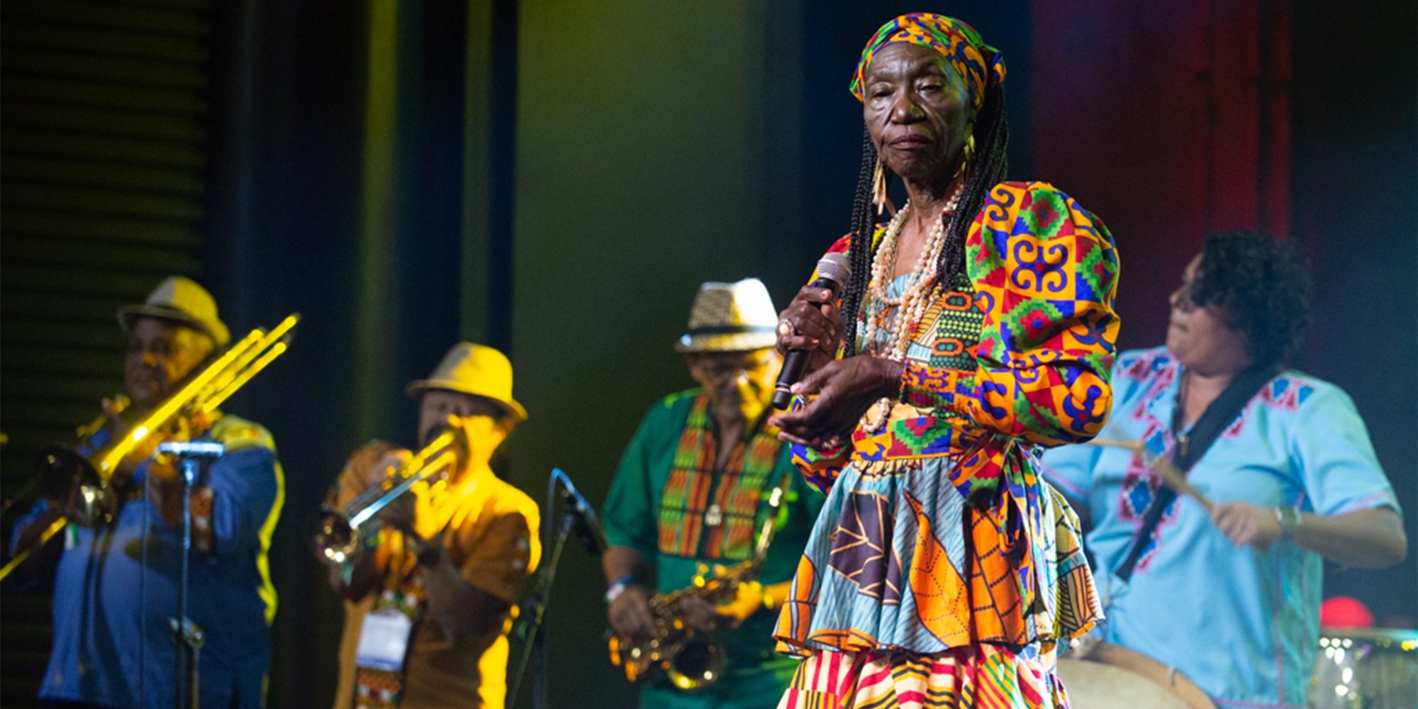 At 78 years old, Lia de Itamaracá is an icon of ciranda music from Pernambuco, Brazil. She proved a commanding presence on stage. Tall, statuesque, reminiscent of the late Zanzibar taarab queen Bi Kidude, Lia led a band of veterans with a full brass section, two female backing singers and three percussionists. She was nothing short of spell binding.
