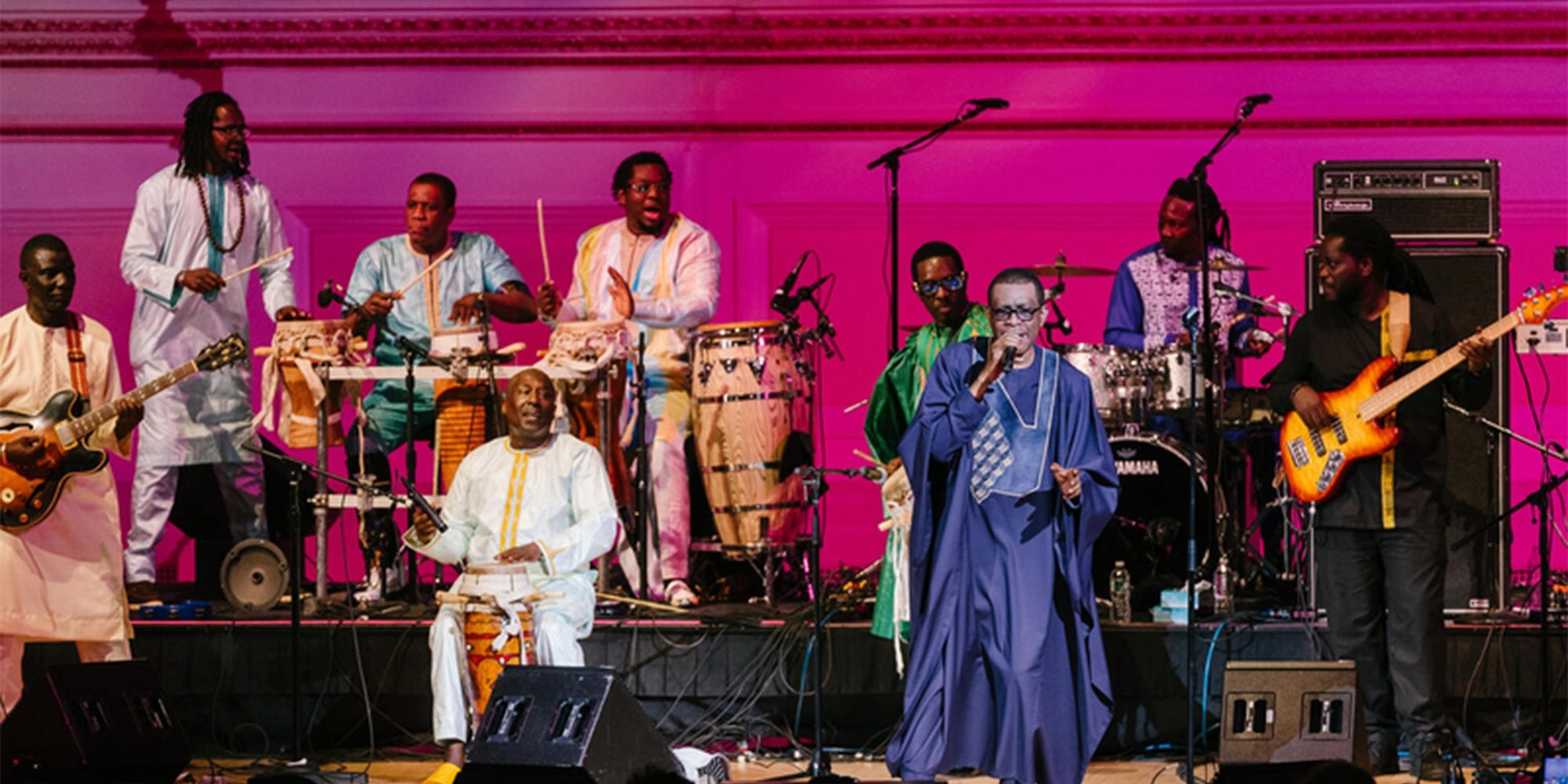 Arriving on stage in a midnight-blue grand boubou, N’Dour fronted an 11-piece ensemble, including some new faces but also key members who’ve been with him for decades. Throughout a two-hour and 20 minute show—by my count a few minutes longer than Burna Boy’s show—N’Dour played some 28 songs stretching out generously and sometimes linking song-to-song without a pause. N’Dour was not aiming for the international hits. Few of those songs contained any English, and well-known standards like “Immigres,” “Birima” and “Set” were bundled together near the end of the show. As an example of N’Dour’s prolific output, I have about 24 of his albums, including a number released only in Senegal, and the Carnegie Hall set list included at least 10 songs I find on none of those recordings.