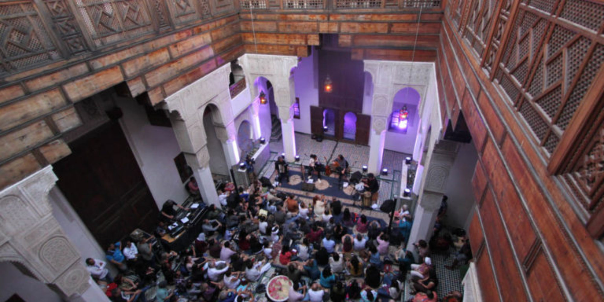 This spring, Afropop returned to Fes, Morocco, for the 23rd annual World Sacred Music Festival, a sumptuous spread of music from across the globe that blurs the boundaries of what is sacred. Interwoven with Morocco’s ornate history and fertile fabric of daily life is a mosaic of many musics: Gnawa, Arabic pop, Amazigh ahwach, classical Andalusian, Issaoua, raï, rap, chaabi, jazz, metal and so much more. At the World Sacred Music Festival, we heard many of these sounds, as well as those of international artists from China to Mali to Kuwait. Join us as we revisit these concerts—the late night music of Sufi brotherhoods, Moroccan fusion with Taziri and Inouraz, traditional Kuwaiti pearl diving music with Salman El Ammari, a stunning bit of Mali-Spain fusion with Toumani Diabate and Ketama, and more. Beyond the festival, we sit in with a respected Gnawa mâalem in Rabat and sample the array of tunes heard in cars, shops and CD stores around Fes.