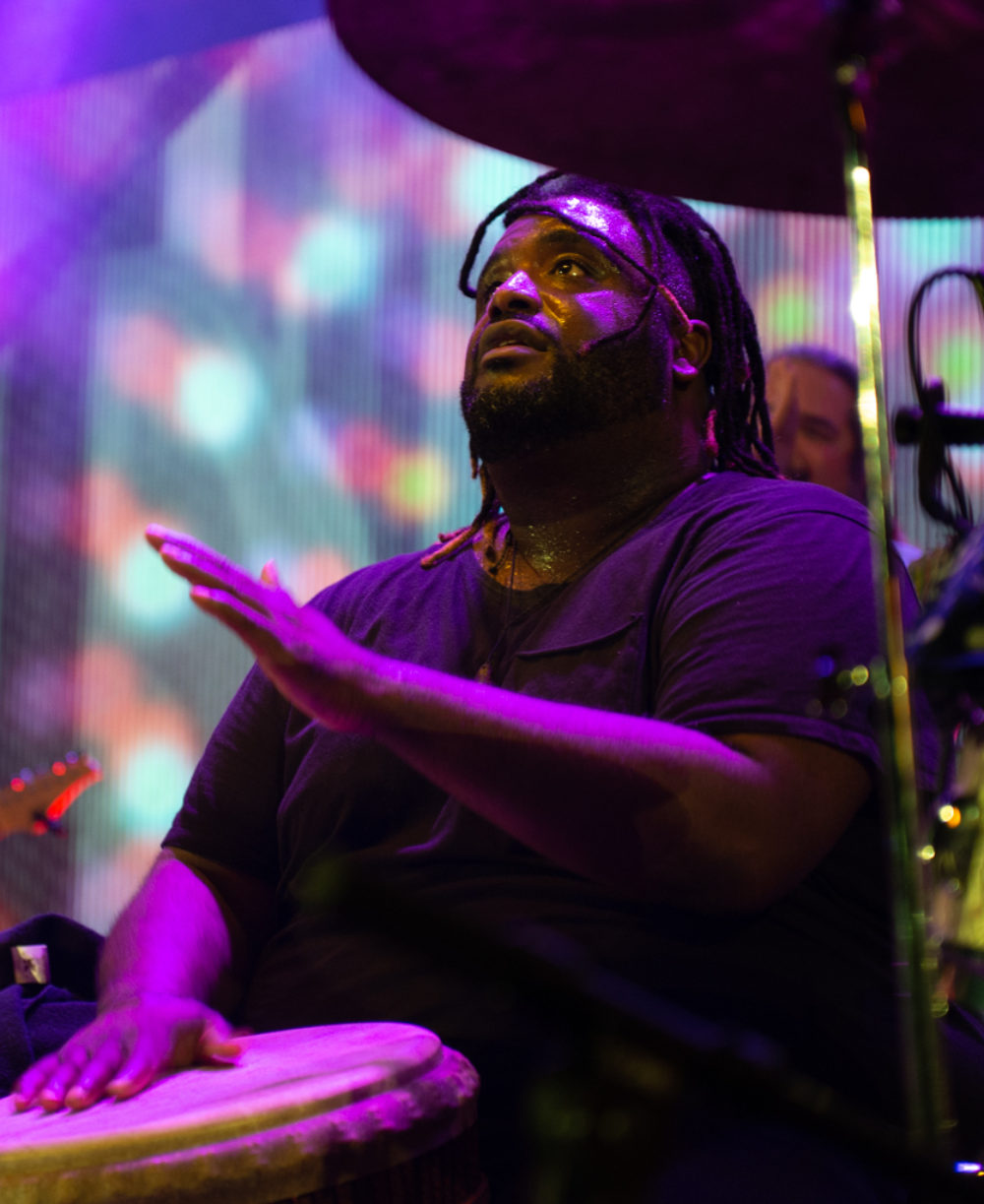 Miami's Afro Roots Fest 2021 presented an extravaganza of live and virtual performances on May 1 at the North Miami Beach Bandshell. Virtual sets by Vieux Farka Toure in Mali and Fulu Miziki in Uganda (originally from Democratic Republic of Congo) interspersed live performances by Afro-Nicaruaguan singer/songwriter Philip Montalban and Sacred Steel pedal steel guitar master Roosevelt Collier with his band, including special guests Richard Bona on bass and Weedie Braimah on djembe and congas.