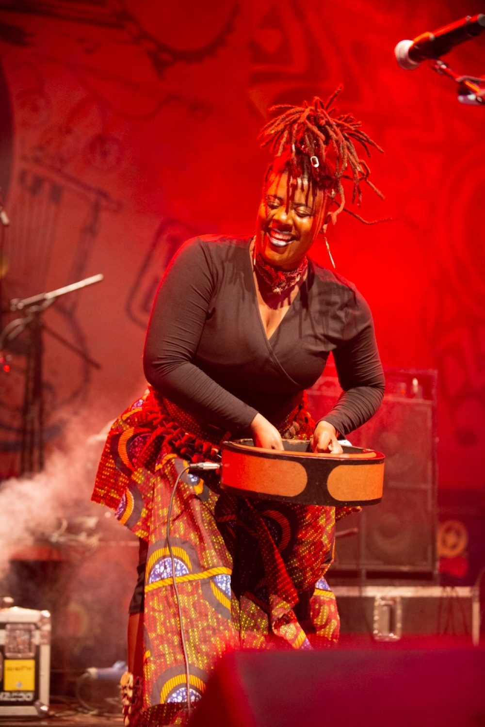 Asia Madani of Sudan thrilled the crowd with her pan-Sudanese sound. Asia is a singer, composer, percussionist, and bandleader based in Cairo where she is well known on the scene. Her repertoire is based on traditional Sudanese folklore, a huge country, from traditions from throughout Sudan, she told us proudly. Rhythms and grooves shifted from song to song, centered around her robust, at times raw, vocals. Naxx Bitota, a Congolese singer based in Montreal, began slyly with international grooves but worked her way up to full-on Congo dance music which really got the crowd going.