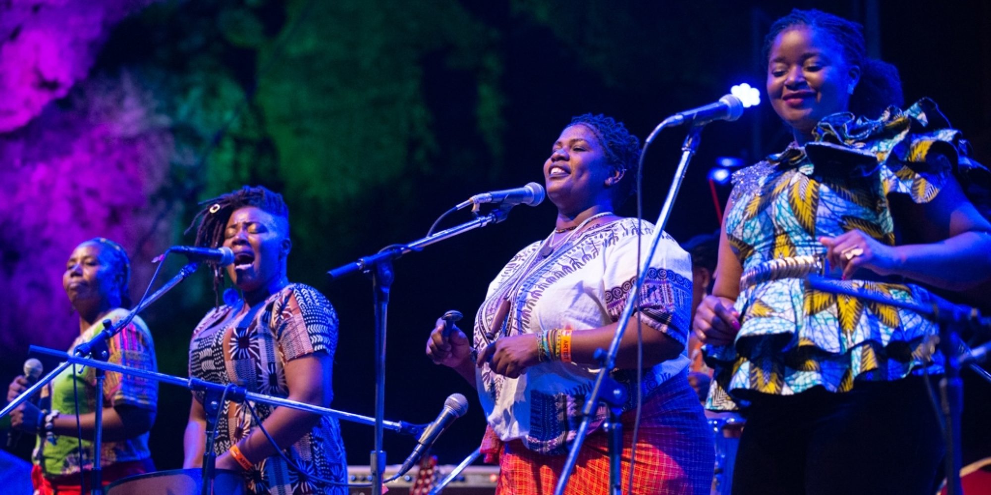 Saturday night took off early with Swahili Encounters, an annual Sauti za Busara tradition, an opportunity for artists from several countries to meet and collaborate. This edition featured women artists from Zanzibar, Tanzaniza, Zimbabwe, Sudan and the DRC. They had only four days to meet and co-compose material they pulled off most convincingly.