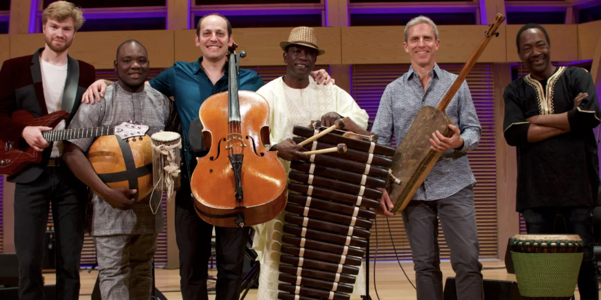Djékady is a new, six-piece band out of Boston, but one with history behind it. It’s the latest collaboration between maverick global cello maestro Mike Block and Guinean balafon master Balla Kouyate, joined by four superb collaborators, including longtime veterans of Boston’s Afropop scene. The band’s debut album, Benkan, is just out and a real gem. This lovely performance needs no introduction…