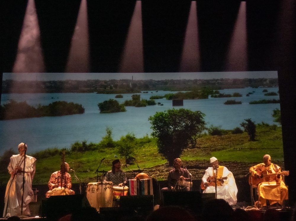 In his powerful book about the Niger River, The Strong Brown God, Sanche de Gramont calls the Niger “the cradle of West Africa” but also a “geographical conundrum.” 4000 years ago, it was actually two rivers, one flowing north from the Atlantic coast of Guinea to a huge lake in a then fertile and green Sahara, and the other flowing south from that verdant land to the Nigerian coast. As the desert expanded, the two rivers joined to become the Niger as we know it today. The Niger’s 2600 miles pass through mountains, forests, savannah, and high desert, then back into savannah, and forests to its huge delta in Nigeria, and that is the journey these six musicians were to trace in their performance.