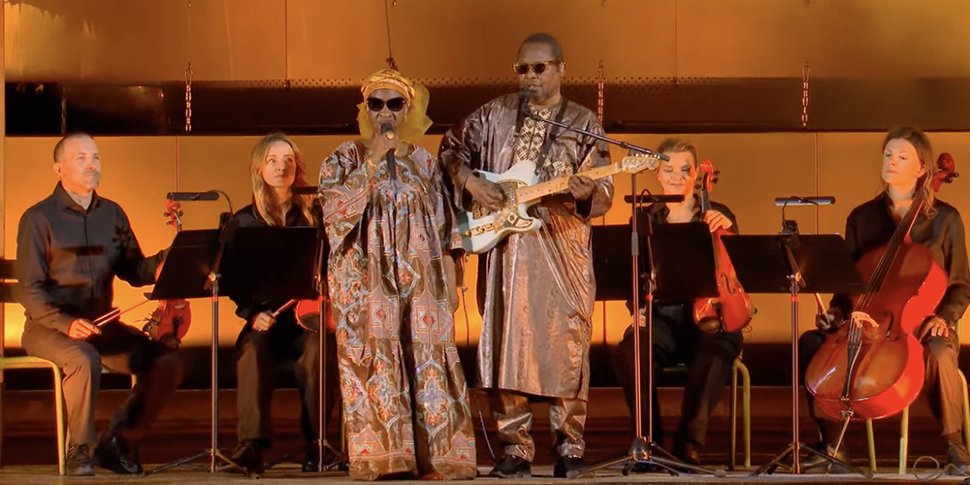 Amadou's musical pairing with Mariam may have seemed a novelty at first, a blind couple composing and performing their own songs. But word of their striking chemistry and paradoxically joyful spirit spread quickly among African music aficionados. Then in 2004 their album Dimanche à Bamako, produced by Manu Chao, hit the streets and they became major pop stars, in demand at festivals and concert halls around the world. From there came star turns with the likes of Damon Albarn, Pink Floyd's David Gilmore, U2, the Blind Boys of Alabama and others, and a kind of international caché carried them along from one triumph to the next.