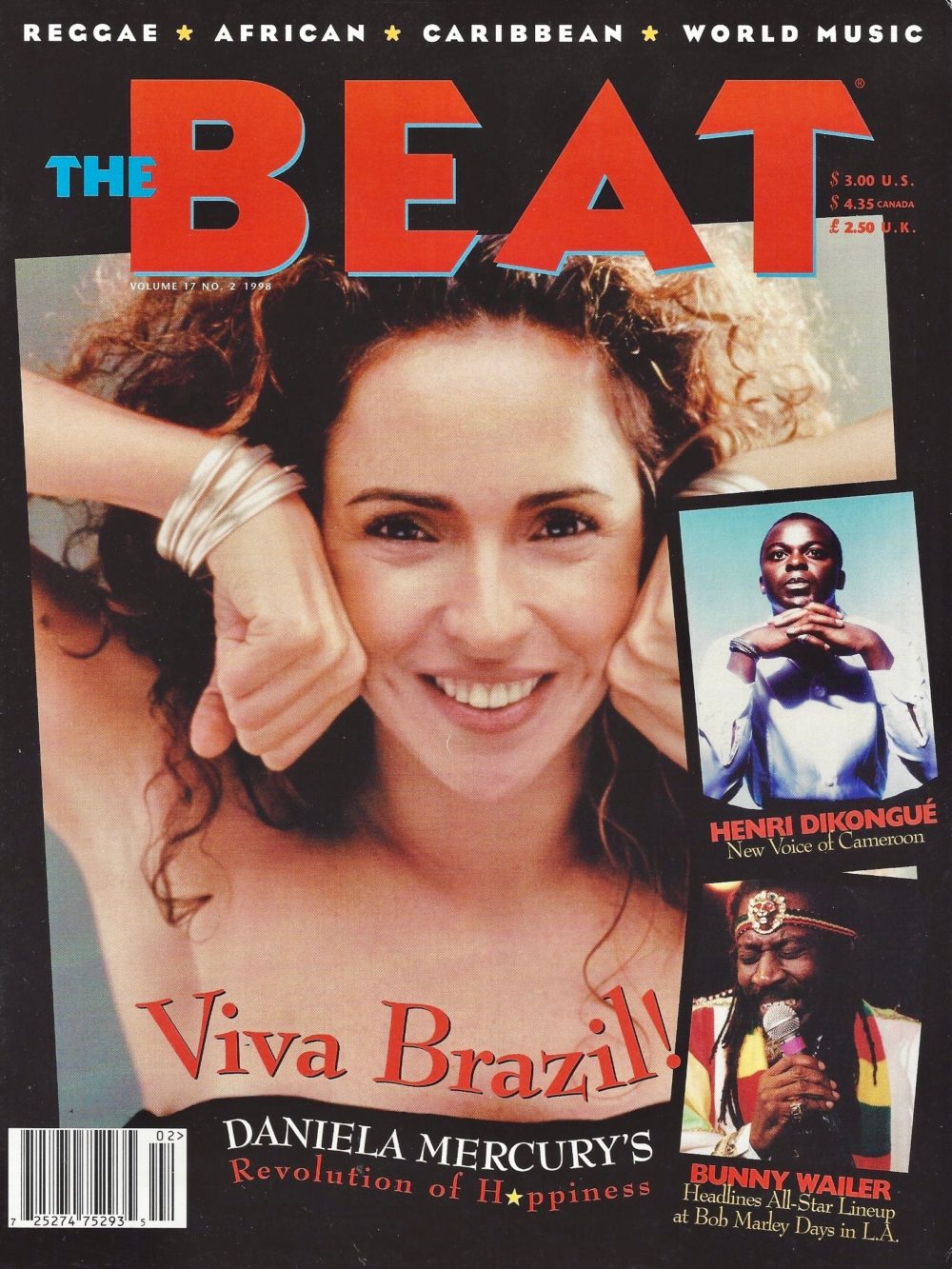 To complement the recent great reporting from Brazil Carnival by Banning Eyre (and another nod to Women’s History Month), we’re showcasing one of Brazil’s best-known female singers, Daniela Mercury—who hails from the music-rich state of Bahia—with an interview from 1998 by Beat contributor Marty Lipp. At this time, she was touring with her fourth album Feijao Com Arroz, which “in Brazil means black beans and white rice, a playful reminder of the unity that can come from embracing diversity,” as illustrated by the album cover photo seen below. On it she offers a selection of the many music styles found throughout Brazil.