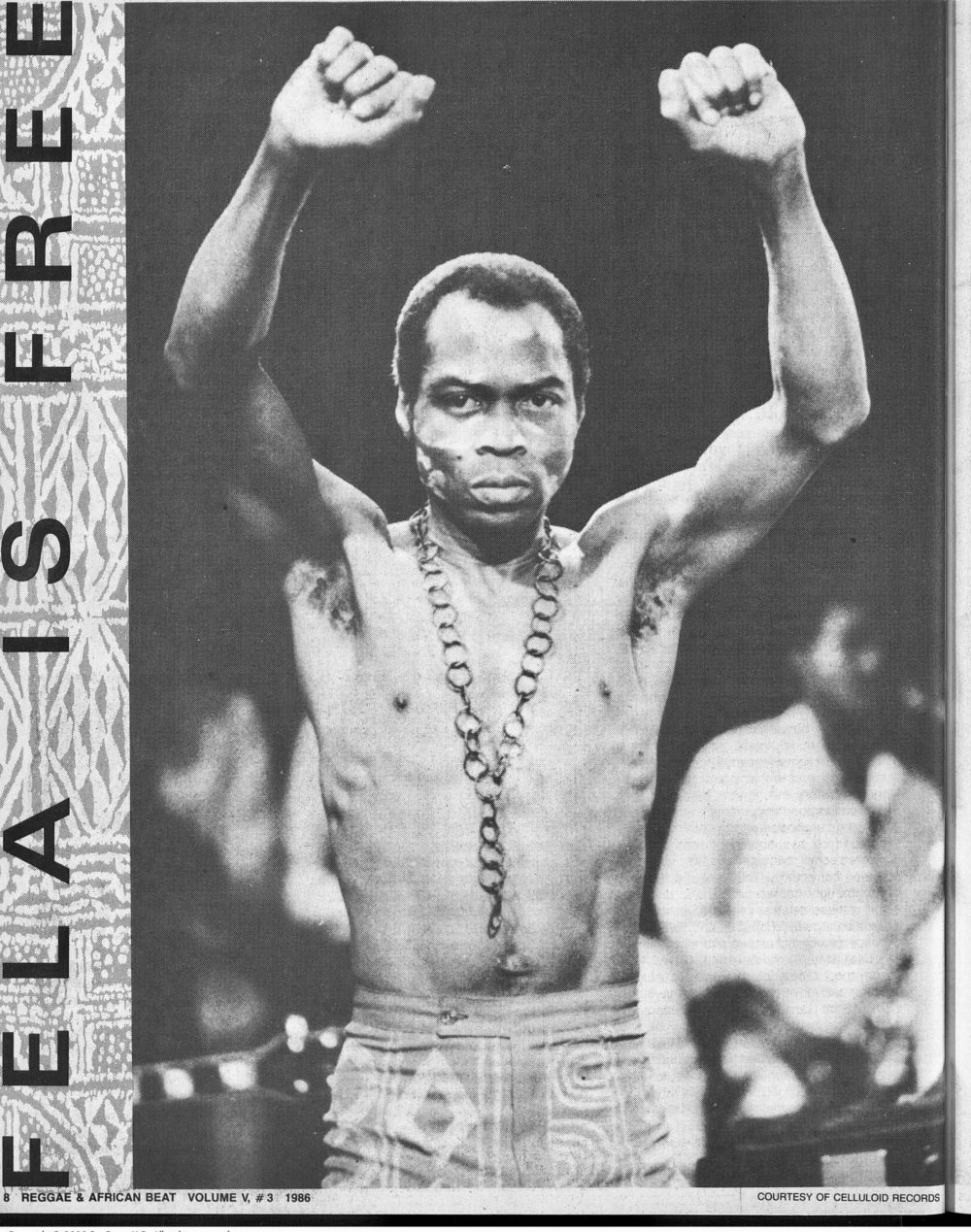 This installment of Best of The Beat, “Fela Is Free,” was published in Vol. 5 #3, 1986, when Fela had just been released from prison following a year of public outcry and protests. Also included is a sidebar from Randall Grass, excerpting an interview with Fela dated May 31, 1986, by Randall Grass: "I believe that suffering has a purpose."