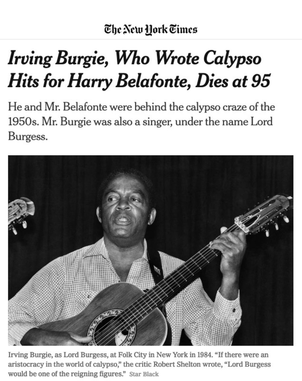 He had a long and very fruitful career, and was honored with accolades from many governments and institutions. His autobiography, titled Day-O!!!, was published in 2007. Burgie died on Nov. 29, 2019 at the age of 95.