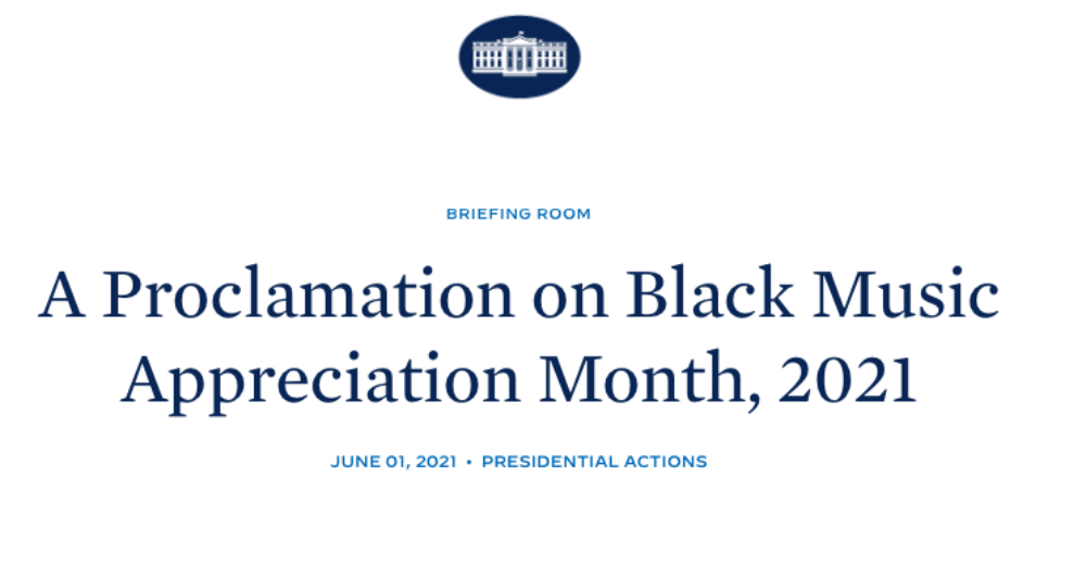Throughout our history, there has been no richer influence on the American songbook than Black music and culture. From early spirituals born out of the unconscionable hardships of slavery; to the creation of folk and gospel; to the evolution of rhythm and blues and jazz; to the ascendance of rock and roll, rap, and hip-hop — Black music has shaped our society, entertained and inspired us, and helped write and tell the story of our Nation.