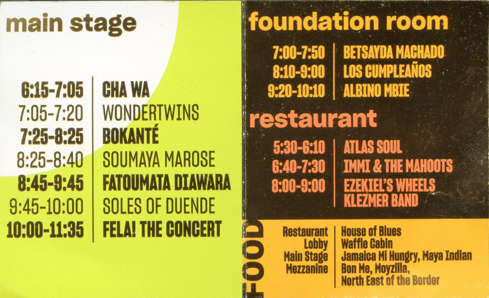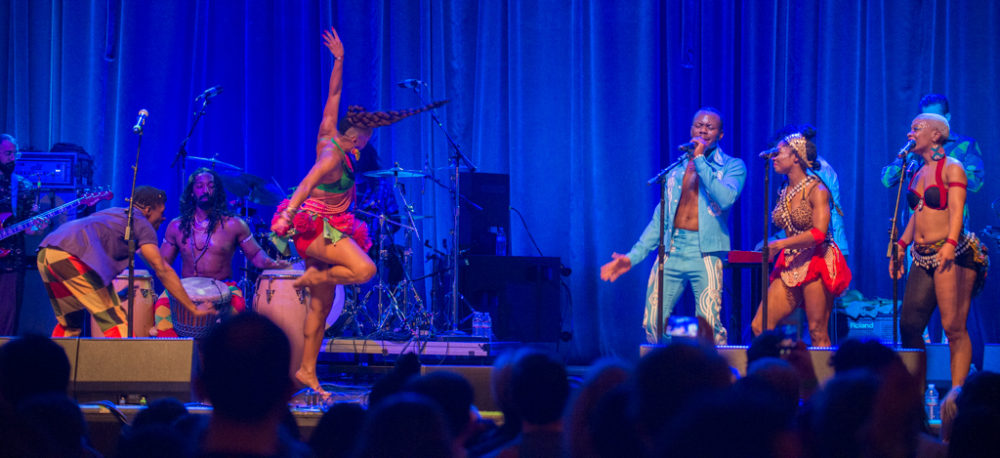 This year’s lineup offered a mix of regional acts like Boston’s Atlas Soul, Brooklyn’s Bokanté (a spinoff of the legendary Snarky Puppy) and Los Cumpleanos, with international groups on tour, including Mali’s Fatoumata Diawara, and from Venezuela, Betsayda Machado. Cha Wa kicked off the action at the main stage with a rocking take on New Orleans Mardi Gras spirit, and the night ended with a full 90-minute set of Fela! The Concert, a tour-friendly reworking of the celebrated Broadway show.