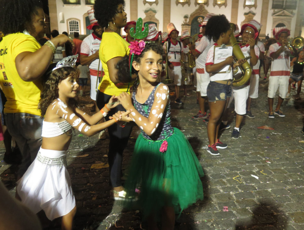 The Filhos are evident throughout the festivities, but on the last day of carnival, they gather in Pelourinho for a night-long parade through the city, en mass dancing and singing to their signature ijexá rhythm, rooted in the distinctive, animating bell pattern of Oxala, the God of Creation in the Candomble religion.