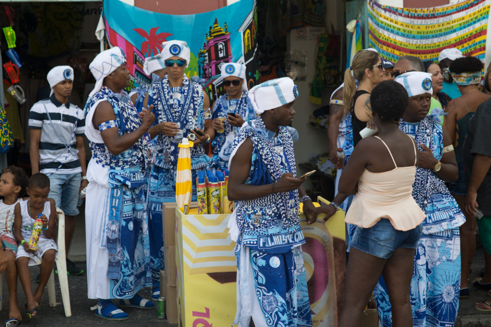 But at the same time, this is an event with an overwhelmingly local vibe and identity. One of the most visible marks of that is the blue and white regalia of the Filhos do Gandhy (Sons of Gandhi), long presided over by Bahian maestro Carlinhos Brown, and these days overseen by Gilberto Gil himself. During his years as Minister of Culture (2003-08), Gil did a lot to enshrine Bahian traditions such as the Filhos in the permanent tapestry of Brazilian culture.