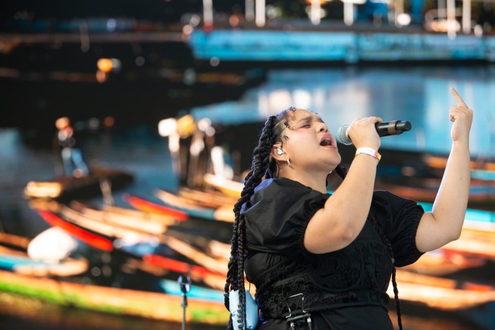 The thermometer in the car read 103 degrees as we parked and made our way to Central Park through the summer swelter. We had missed the set by U.S.-based Pakistani sound artist SLOWSPIN, who opened this free show from Capital One City Parks Foundation SummerStage. But all present were soon blessed with a refreshing breeze—the beginning of the end of our regional steam-cleaning—just as Lido Pimienta brought her Colombian neo-folk trio to the stage.