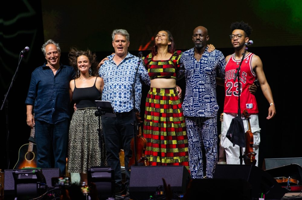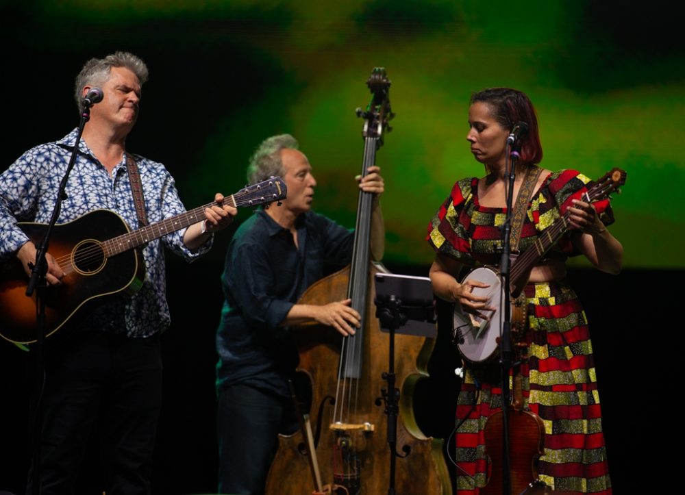 Speaking of the Chocolate Drops, there were a number of references to the late old-time fiddler Joe Thompson. Thompson was more or less the band’s guru back in the day, the man who schooled the musicians in the fine points of Piedmont music from North and South Carolina. This concert was a celebration of African Americana, with side trips to Nigeria and Congo. Giddens, who spoke with Afropop for our program The Black History of the Banjo, has long championed awareness of the Africanisms in American music, particularly old time and folk, where there’s been a good deal of whitewashing over the decades.