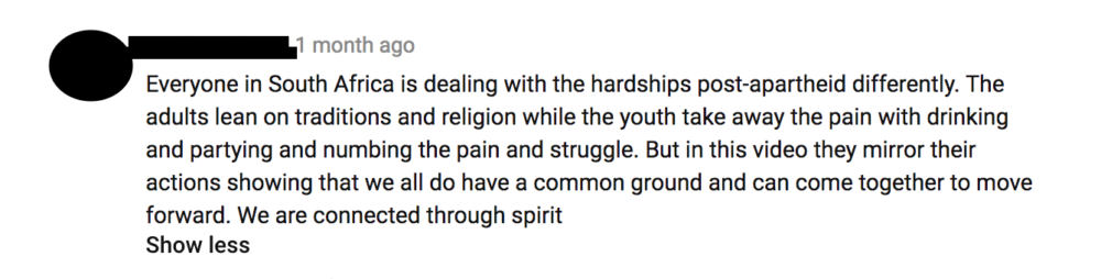 The video will keep you transfixed with many themes present. The comment on this video beautifully picks up on the images juxtaposed in this video which depict everyday life in South Africa among the young the old. It shows working and underclass neighborhoods, at times depicting very disturbing images. Kwesta is an honest lyricist who reflects the voice of the people which is evident in this track and video.