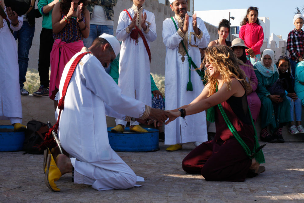 It’s a whole lot of loud, chanting voices, frame drums, handclaps and an occasional high-pitched flute. Three of the 10 musicians in Essaouira danced on the cut-off tops of oil drums, almost like tap dancers.