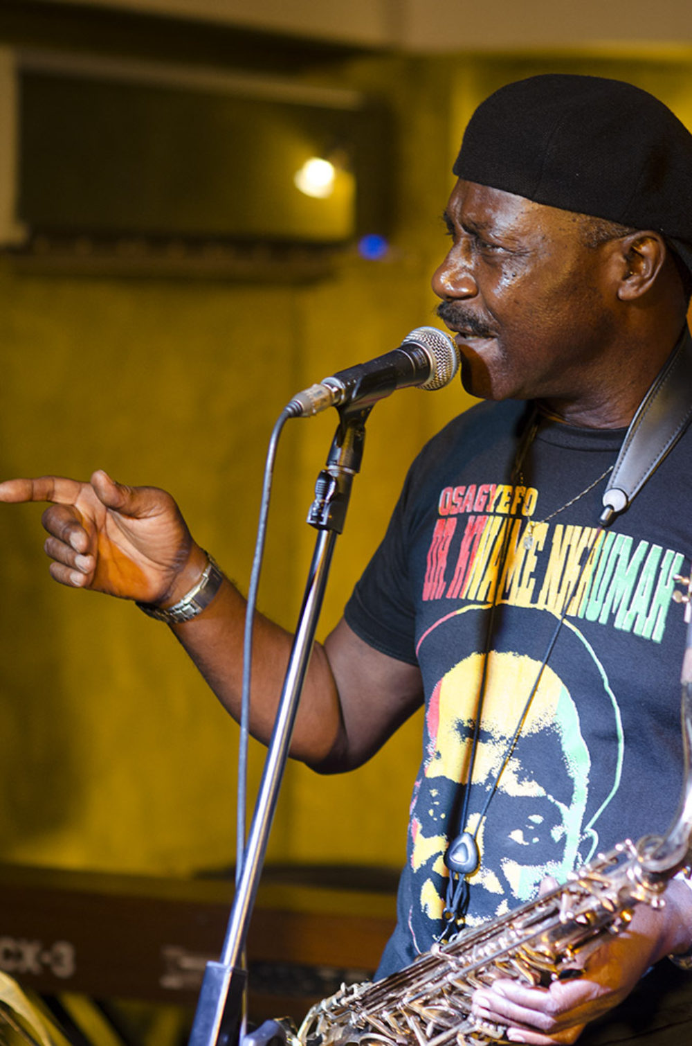Music is for sharing. The moment we stand on the stage, we are trying to share with the audience. The message has to move between the musicians and the audience. So when it happens like that, you and the audience all become one happy family and enjoy it. When I was in America, I went to jazz clubs and I feel that often the jazz musicians are more into themselves than into the audience. I think that needs to be changed. Highlife can do that.
