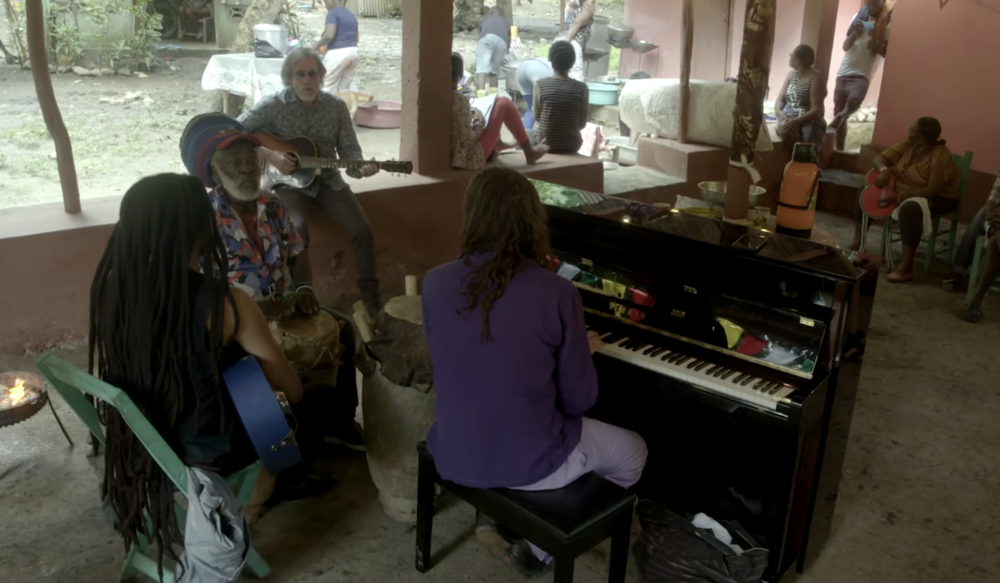 We went to see Lakou Mizik perform on the night before we started recording. When we arrived in Jacmel we had a great meal at David Belle's house, and then, right up the road there was this club, and Lakou Mizik was playing. And they were incredible. Oh my God, just so great. They began with this Haitian choral music, and then there was such a profusion of drums. Raul [Rodriguez] was in heaven. He was hearing rhythms that he knows the origin of, because he's a musicologist. And then Jonathan was saying, "We want that guy." Basically, it was like going to the market. Right away, he wanted [Samba] Zao, who is kind of the patriarch of that band. And we’ve got to have Nadine, one of the singers. We just wanted these folks close by when we were recording to come because we didn't know exactly what we were going to do.