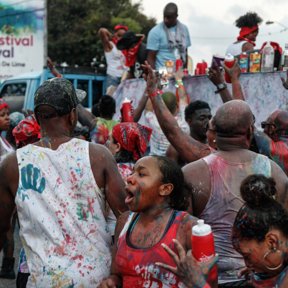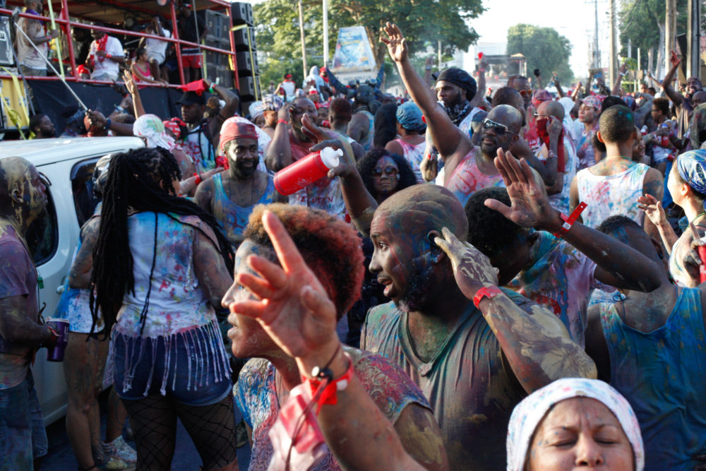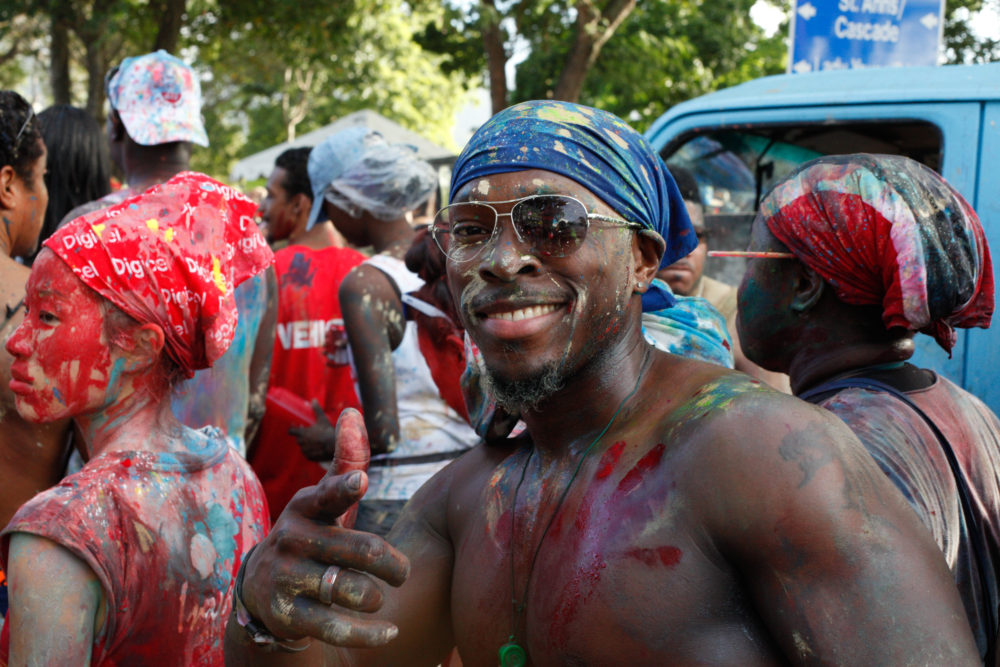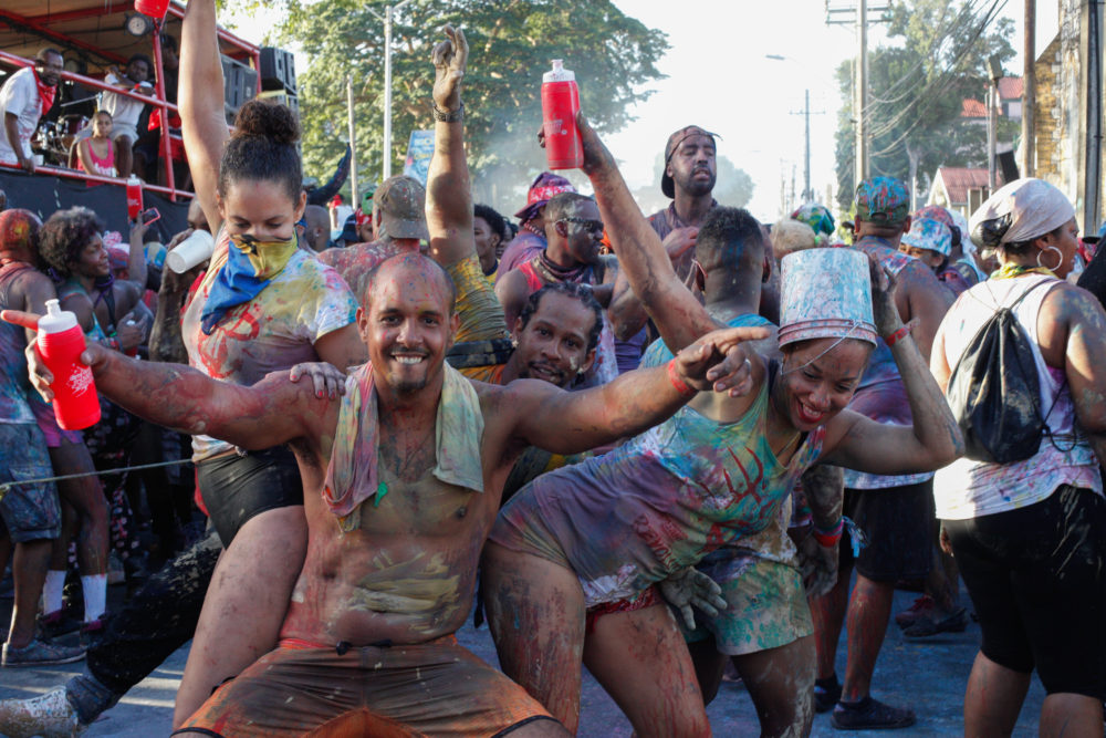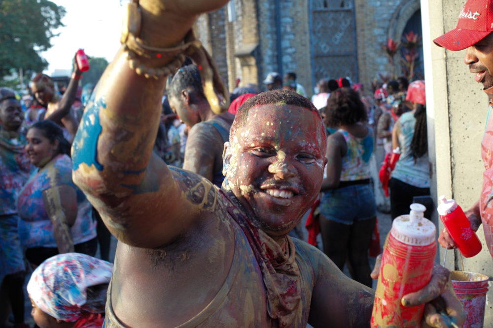 In Trinidad, Carnival itself begins in darkness. Before dawn on Carnival Monday morning, the bacchanal begins with J'Ouvert. When you see the feathers and glitter in the sunshine on Carnival Tuesday, that's pretty mas. J'Ouvert is dirty mas. It's the much needed balance--the foil to the manicured opulence. It's as necessary as night is to day. J’Ouvert is the time to free up, let loose and get real dirty. People dance down the road to soca music booming from trucks, drinking liberally from moving bars and wining without restraint. Depending on who you roll with, you'll get smeared with paint, powder, mud, oil--even chocolate.