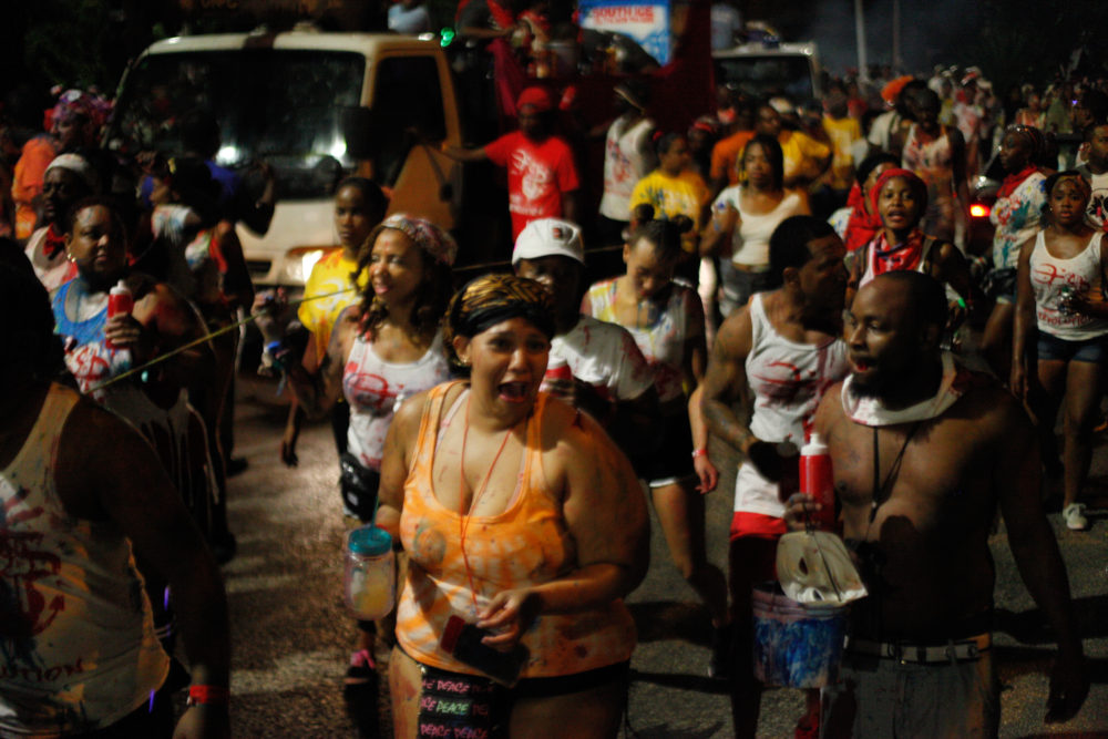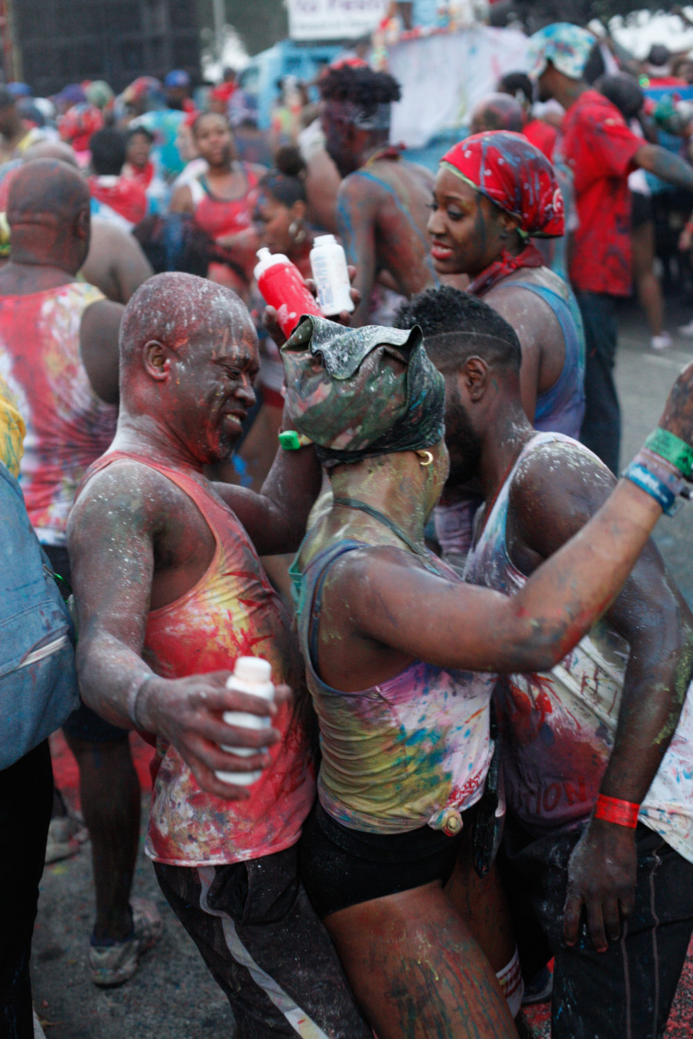 For most revelers these days, J'Ouvert is less about the masquerade tradition and more about the party. Older heads may tell you J’Ouvert has gotten too commercialized and lost some of its life-giving chaos, but for a lot of people, J’Ouvert is still the peak of Carnival. I was graciously hosted by Dirty Dozen, a typical paint and powder J'Ouvert band that includes drinks, breakfast and security in their ticket fee. Some bands keep the traditional J'Ouvert soundtrack of steelpan, drums and beaten iron alive, but many, including Dirty Dozen, just play the same soca music you hear all the time. There are some songs built for J’Ouvert, though. They’ve got skimpier, dirtier beats, heavy on bass and drums. For some reason, St. Lucian soca artists like Motto, Freezy, Mighty and Subance were fueling the J'Ouvert jams this year, with their signature style. Serious wining music. Check out the rest of these photos from J'Ouvert and listen to the J'Ouvert jams mixed in.