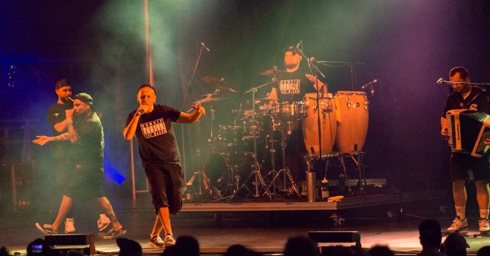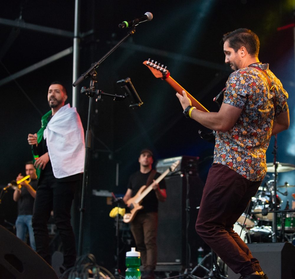 French Algerian rap meets cumbia by way of Chile in this high-energy act, featured in this interview with Ron Deutsch. The two leads, Saïdou and Juanito Ayala, are non-stop action onstage, prancing and posing with nary a pause in the band's slamming, dance grooves. Serious fun!
