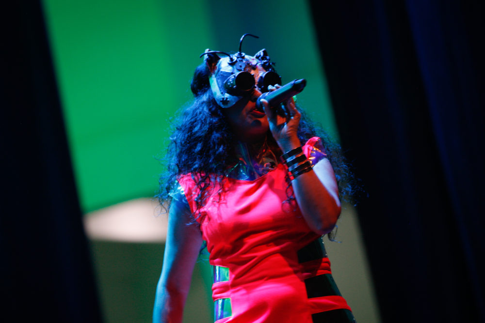 Mariana Yegros has a big presence on stage, and her theatrical background comes through in the band’s costumes. At one point, she toasted beautifully over a dancehall break.