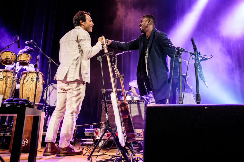 Then on to Seu Jorge and Rogé. After 25 years of friendship, they have recorded together for the first time: a whirlwind, four-day, direct-to-disc session in the Netherlands. Rogé played the tenor Caetano Veloso to Jorge's baritone Gilberto Gil, trading instruments and proving worthy heirs to their MPB forebears. Although nominated for a Latin Grammy, Rogé is probably less known in America, but his fleet guitar playing, particularly on the songs he played solo, had the crowd eating from the palm of his hand.