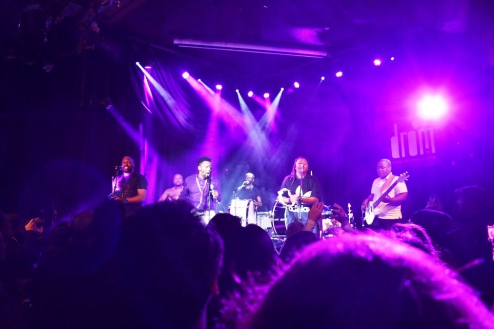The South African group BCUC was in town for Sunday’s globalFEST, but they were the secret guest at the DROM showcase on Saturday. With all the groups playing half-hour sets, BCUC only got to play two abridged versions of their trademark extremely long songs. But even if the group’s jamming was attenuated, the intensity sure wasn’t. It reminded me of the hardcore shows I’d go to in high school, all sweat and raw throats, but much better on rhythm and many more mini-sermons about respecting and loving our parents and grandparents.