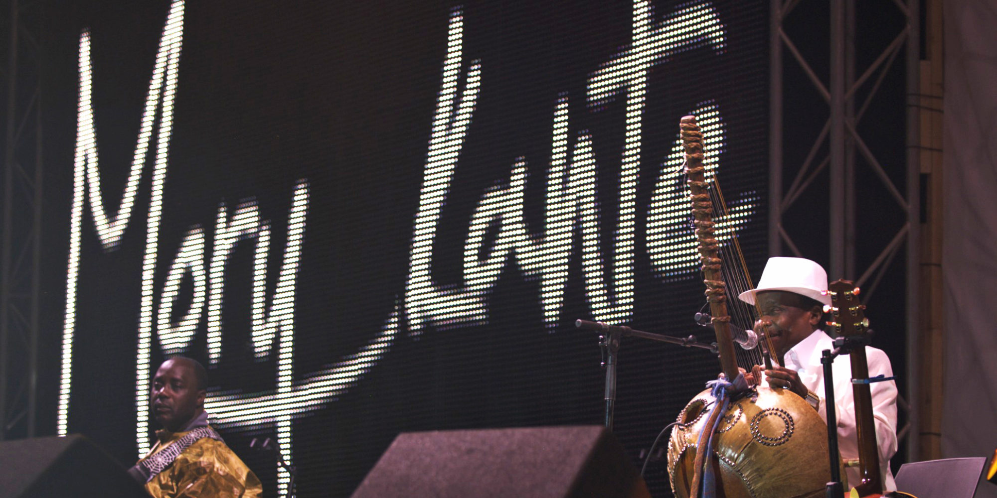 We have lost another giant of West African music. Mory Kante set a seemingly impossible milestone in 1987-88 when his techno-pop version of the song “Yeke Yeke” topped European charts. The man in white, wielding an electrified kora and singing with the force and precision of a griot on steroids, became one of the most in-demand African stage acts of the 1990s. Afropop Worldwide was privileged to record one of his shows, alongside the Gypsy Kings and Khaled, at a memorable Central Park Summerstage event in New York—a prized treasure in our archive!