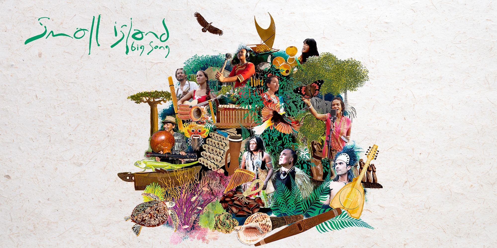 Tim: Absolutely, well, with Small Island Big Song, I guess there are a few things to say. One is that everyone represents the voice of a different island in the Indian or Pacific Ocean. They are all united by a common heritage. The first people to cross the horizon, the seafarers, were actually the first people to settle and live in these places: Madagascar, Rapa Nui (Easter Island), Hawaii, Taiwan, Papua New Guinea, New Zealand, Borneo… These are the names we have now for these places, but they had their own names before. They all share elements of culture and language.