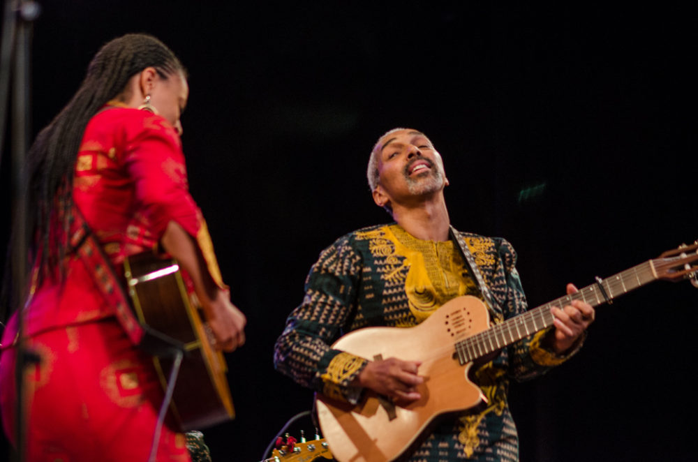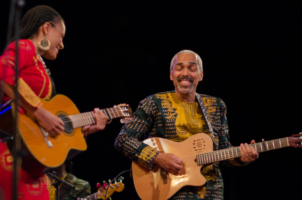 That came much later. I just picked it up. I never studied it. So I don't say I’m a guitarist, because I don't play anything except my music. So don't hire me. I just know what I need to know to get the sound I want. I leave that to the Dereks of this world. For the guitar, it's very personal. It's very much a personal instrument. I use it for my own music, but I love its ability to adapt to different tones and sounds to the kora, and to different genres. It has such flexibility and range. It's amazing to work with it. And I write with it most of the time. But I came to the guitar much, much later.