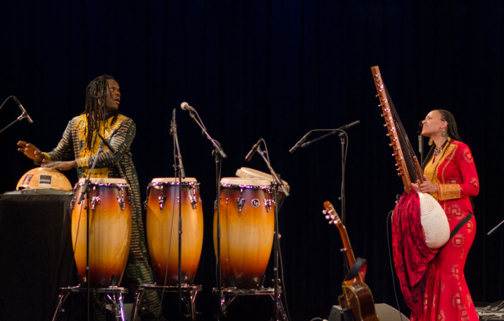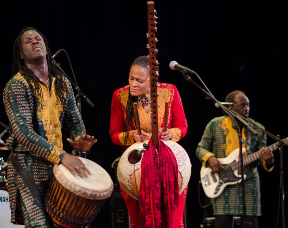 He was the easiest person I think for me in terms of that, because from the first time I played with him, he played three or four seconds and I was like, "Yes. I don't care what you do. Yes. Yes.” He's Senegalese. He plays with Baaba Maal, so he's very well-established. What I really needed from a percussionist is someone who understands the Manding tradition, and at the same time can also bring innovation to it—someone who is not so stuck that I can't give them something new and not make him struggle. This was always my challenge before I found him. I either got very traditional players who knew the songs, and it was beautiful to play as long as we stuck to “Jarabi” as “Jarabi” is played. But as soon as you want to change the timing or put it on its head or push it out and do different things, it becomes a big problem. And likewise if you go for someone who can do that innovation, then they don't know the tradition. I was always falling in between those two places, so to find Mamadou, who could do both, was a blessing.