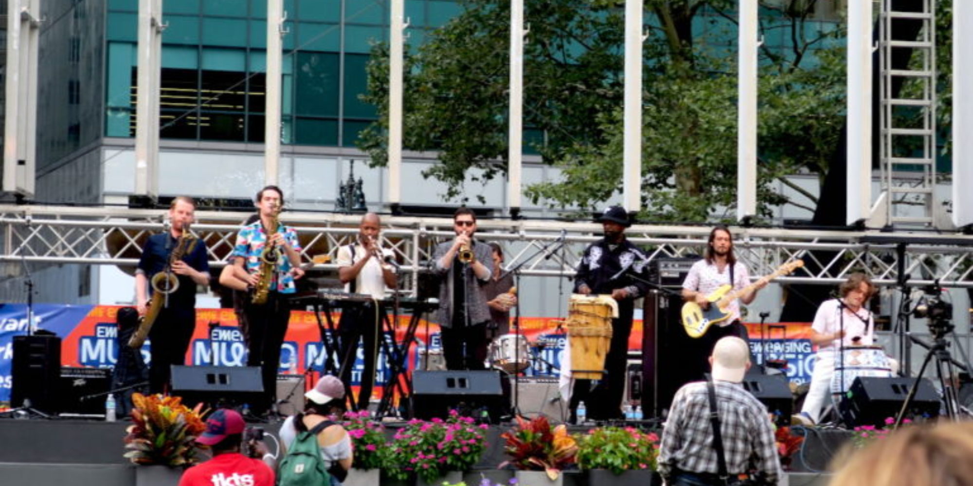 Brooklyn Afrobeat group Super Yamba Band made the long journey across the East River to Bryant Park in Manhattan to play the third annual Emerging Music Festival on Sat., Aug. 19.