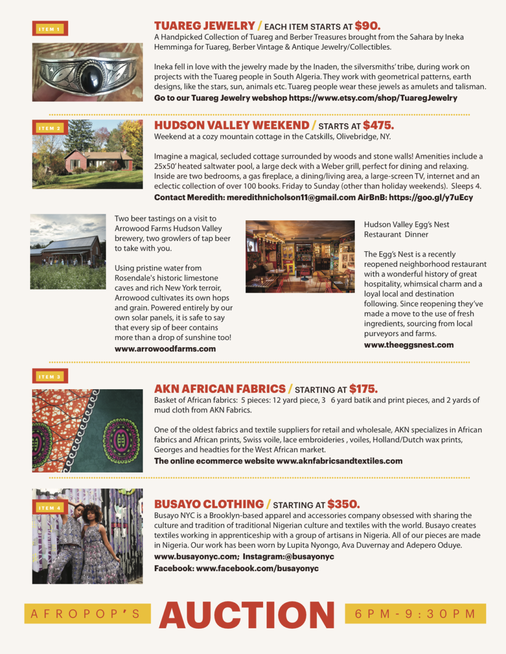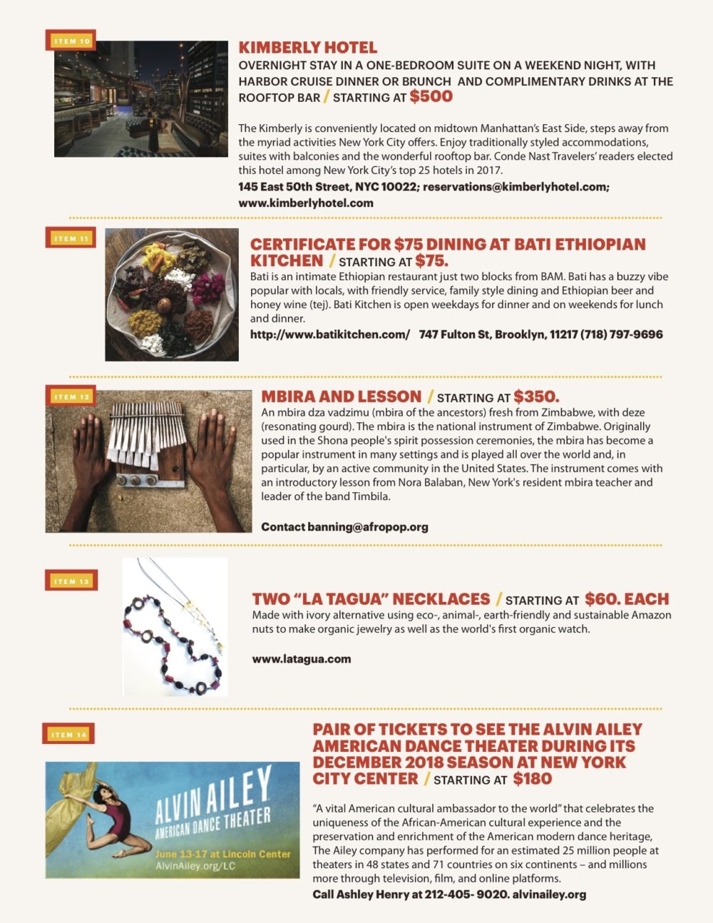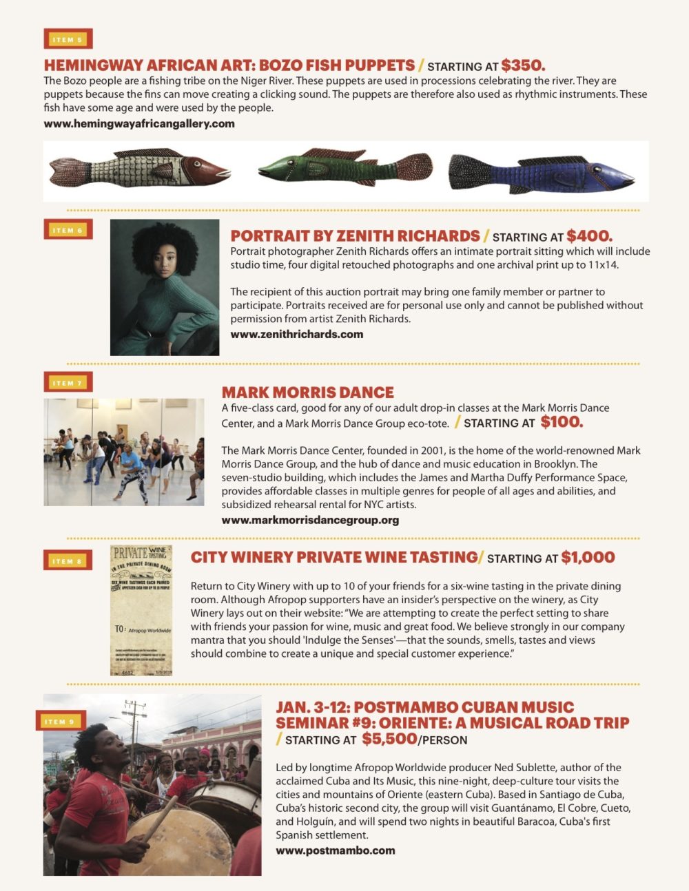 Afropop's 30th anniversary gala is May 3. In addition to a great meal and performances from Afropop Hall of Fame inductees Mokoomba and Aurelio Martinez, there will be a silent auction that includes original art, weekends in the country, tasting of libations, and even cooking a meal with our beloved host Georges Collinet. It's going to be a great party, and it's a terrific chance to support the work that Afropop Worldwide does and is planning to do.