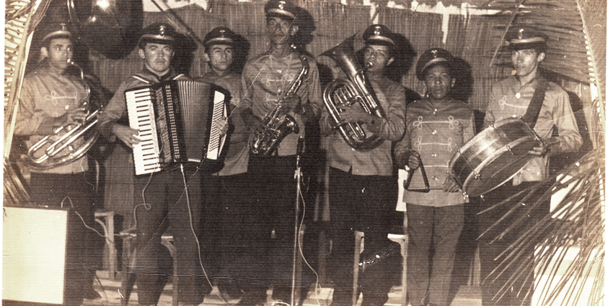 Forró music may be defined for many by the centrality of the accordion, but as Analog Africa’s new compilation, Camarão: The Imaginary Soundtrack to A Brazilian Western Movie 1964–1974, demonstrates, a forró trio is two-thirds percussion. The triangle and zabumda form the backbone that Reginaldo Alves Ferreira’s accordion swoops and bounds on. It is forró at its widest definition, a blanket term for a number of northeastern dance genres that use the accordion. It’s Camarão’s compositions playfully orchestrated and filled out with big booming horns and subtle electric guitar licks that would sound at home next to pieces by Ennio Morricone or Ry Cooder, but always driven by the beat.