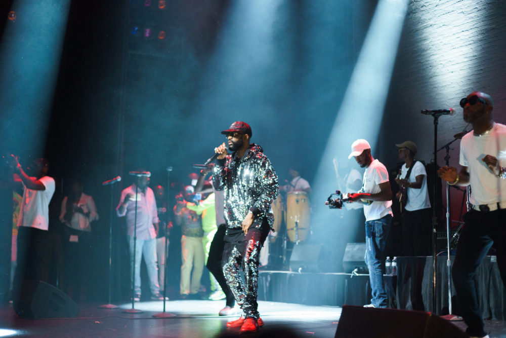 At the Apollo concert Fally started with “Sweet Life,” a crossover r&b/rumba hit from 2013. As he sang and the audience sang along, I realized that I could identify several musicians onstage from the local Congolese music scene. Later I learned that about half of Fally’s band had been denied entry to the U.S. after a run of shows in Canada, subs had been called the very morning of the concert, and considering this, they did a tremendous job with the star’s repertoire, including many of the songs from Tokooos. The crowd sang along with most of the songs, phones out in selfie mode or live-streaming the show, dancing in the rows. Fally called on a few ladies from the front row, one at a time, to climb on stage. Each one, dressed to impress, approached Fally with timidity or temerity, and he focused his razor-sharp attention on each dancer for a brief moment, dancing seductively but keeping a few feet between himself and the dancer, before dismissing the lady with a smile, to return to the throngs below.