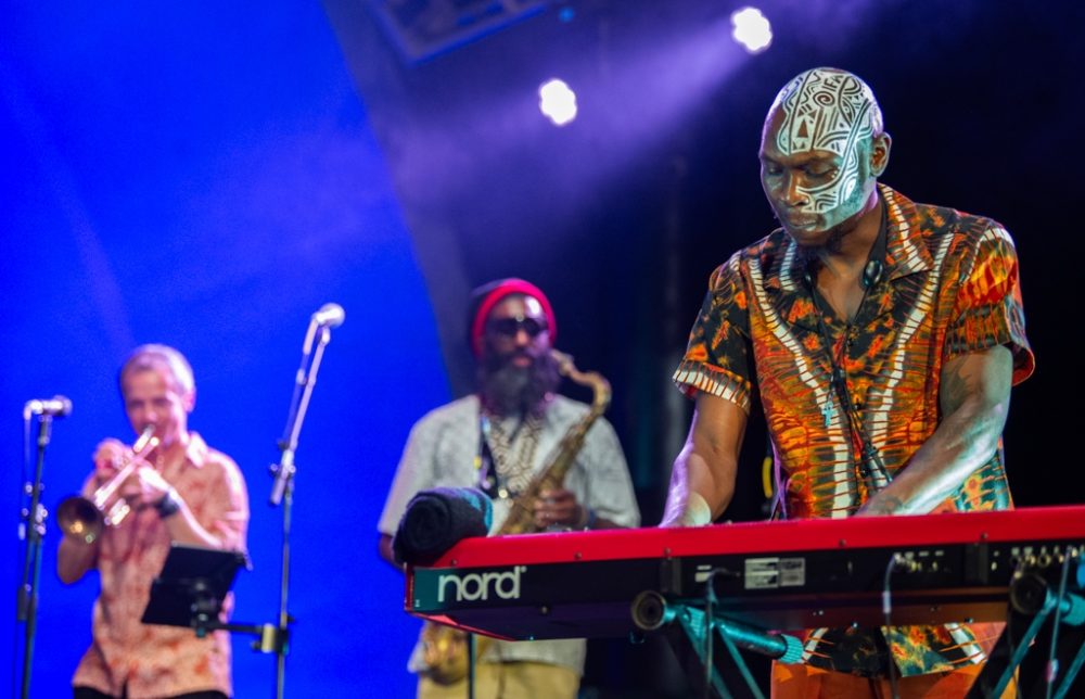 Fresh off the launch of his collaboration with Damian Marley, “Dey,” Seun was in excellent form, as you’ll hear in our interview Saturday afternoon at the site [stay tuned to Planet Afropop for that…] The upshot is this: Seun has been “internationalizing” his band Egypt 80, something he’s quite sure Fela would have approved of now that Afrobeat is a global music. New Egypt 80 musicians from Algeria, France and Martinique delivered all that you would expect from this iconic band. And there were some great new songs in the set.