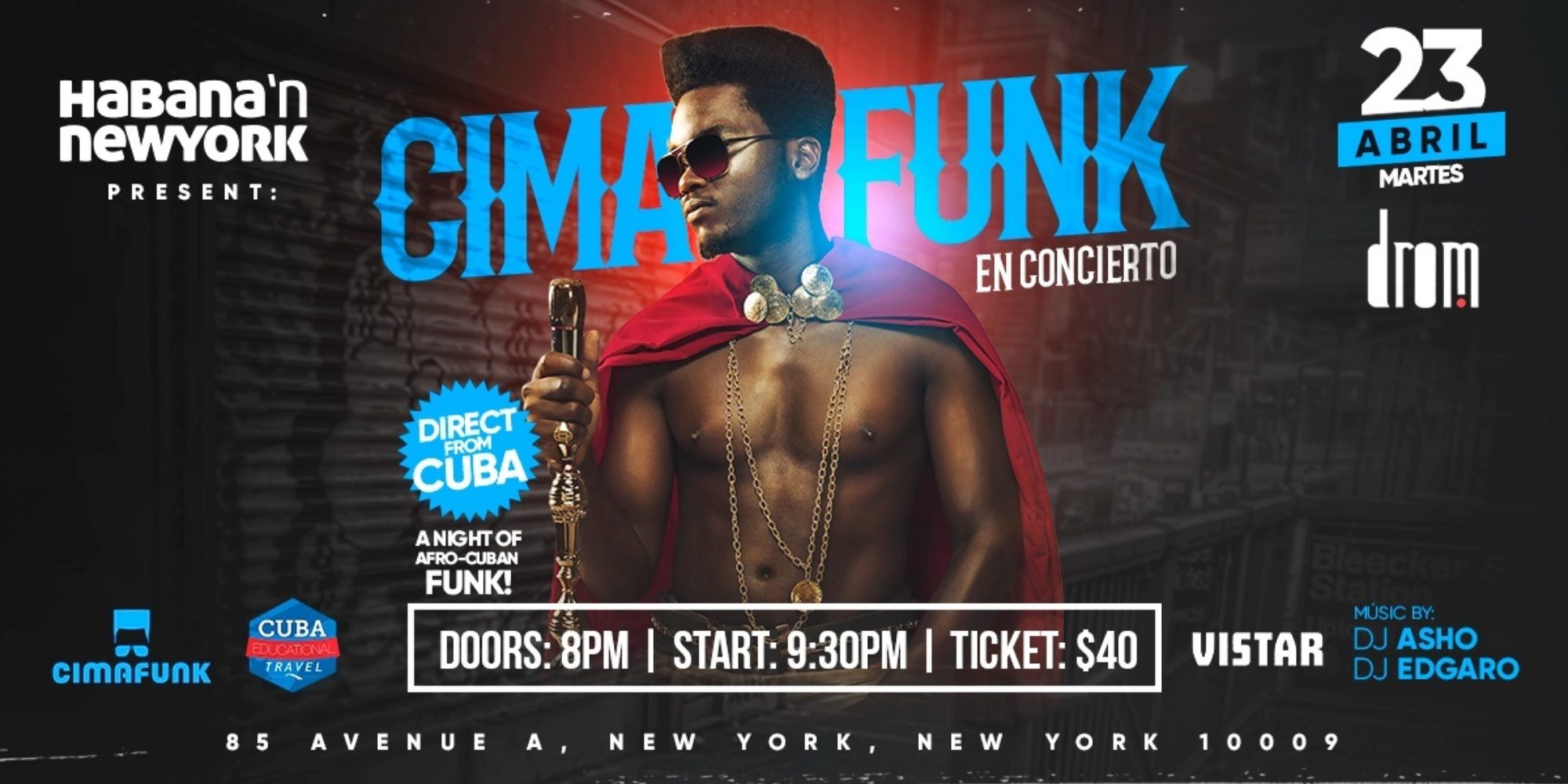 Habana’n New York and Afropop are giving away a pair of tickets to see Cimafunk on April 23 at DROM in Manhattan’ s East Village. Winning is simple: sign up for our enewsletter and send an email to info@afropop.org with “Cimafunk!” in the subject line. Then keep an eye on your inbox, we’ll email the winner a few days before the show.
