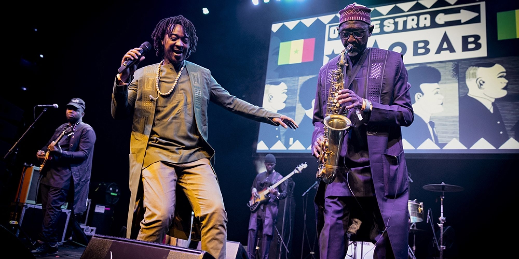 On Thursday, we went in a bit wary of a newly-organized edition of the seminal Senegalese group Orchestra Baobab. But we needn't have worried as this mostly younger generation of artists stayed true to the band's 50 year legacy, sounding fresh and vital while honoring its legendary history. And not to belittle the group in any way, but one has to think it's like going to see the Benny Goodman Orchestra today. No Goodman, no Gene Krupa. You're going for the songs and the arrangements, not as much about the musicians themselves, even though they are quite competent.