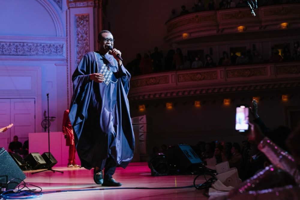 Just weeks after singing the opening song—his indispensable anthem “New Africa”—at Burna Boy’s sold-out Madison Square Garden show, 62-year-old Youssou N’Dour pretty much sold out the equally prestigious, if smaller, Carnegie Hall. The Carnegie Hall crowd was, like Burna Boy’s, mostly African. But this time most were Senegalese. That was evident by their elastic dance moves and their knowledge of N’Dour’s complex lyrics. These Africans were fabulously turned out, especially a large contingent of slim women in elegant, sparkling gowns and elaborate hair weaves. Maybe they weren’t as young as the Burna Boy fans, but still a good deal younger than the grey-beard Americans like myself who also attended. Many of us have been listening to N’Dour for a good 35 years, longer than a lot of the Carnegie Hall fans who attended have been alive. That is staying power.