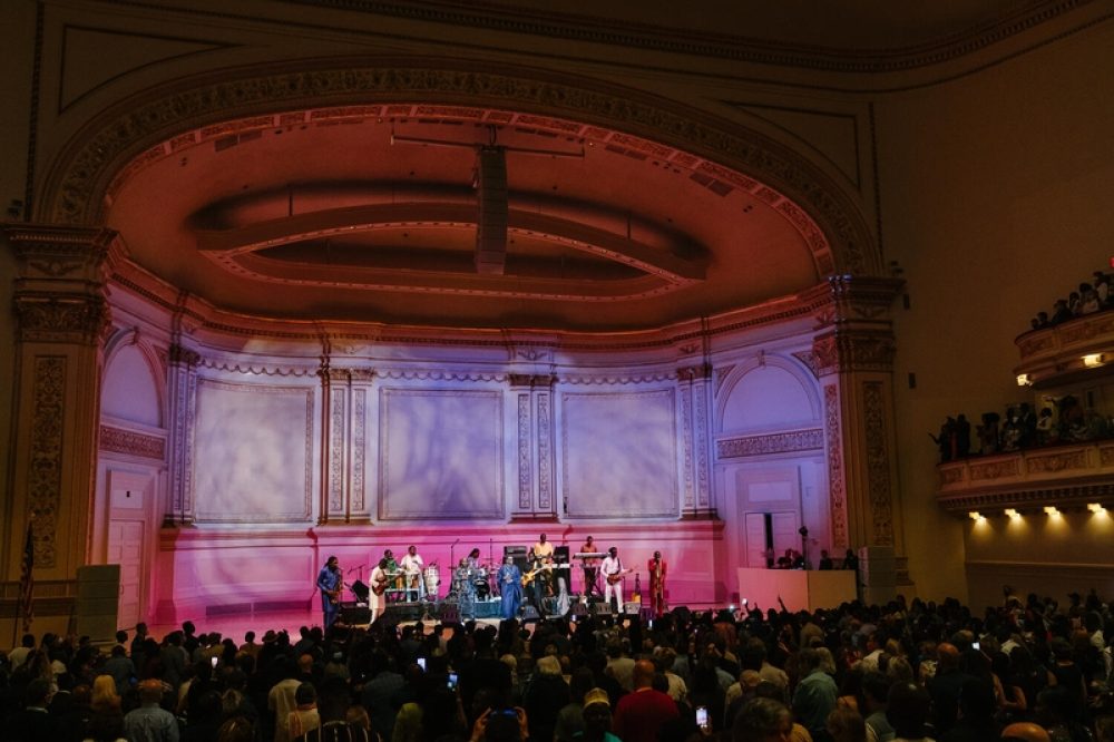 Arriving on stage in a midnight-blue grand boubou, N’Dour fronted an 11-piece ensemble, including some new faces but also key members who’ve been with him for decades. Throughout a two-hour and 20 minute show—by my count a few minutes longer than Burna Boy’s show—N’Dour played some 28 songs stretching out generously and sometimes linking song-to-song without a pause. N’Dour was not aiming for the international hits. Few of those songs contained any English, and well-known standards like “Immigres,” “Birima” and “Set” were bundled together near the end of the show. As an example of N’Dour’s prolific output, I have about 24 of his albums, including a number released only in Senegal, and the Carnegie Hall set list included at least 10 songs I find on none of those recordings.