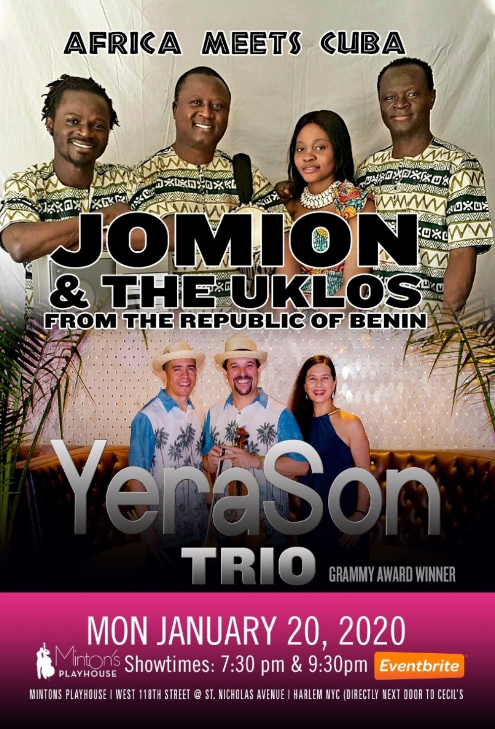 Jomion & The Uklos is a family band from Benin, West Africa, led by Samuel “Jomion” Gnonlonfoun, founder of the internationally renowned Gangbé Brass Band. With his brothers JB, Mathieu and his daughter Rose, Jomion combines traditional rhythms and songs from Vodoun (Voodoo) culture with reggae, salsa and jazz to create vibrant, relaxed dance music, he named Whedo-vodoo-jazz(W.V.J). Jomion & The Uklos are currently based in Brooklyn, NYC. They performed recently on Lincoln out doors festival, in prestigious venues like BBKing and tour regionally and they also recorded and performed with Bobby McFerrin.