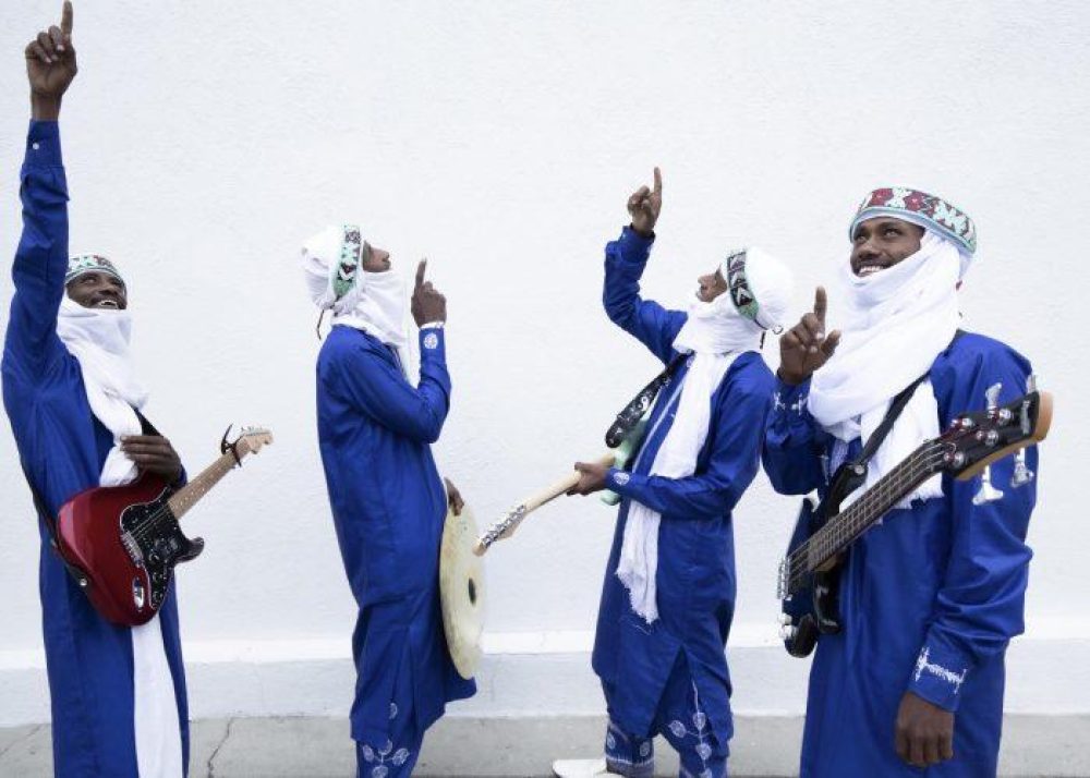 The band Etran de L’Aïr (“stars of the air”) is a family collective from the town of Agadez nestled in the mountainous region of northern Niger. The area is known for its music; specifically the hypnotic electric guitar riffs characteristic of the desert blues of North and West Africa, popularized by artists including Vieux Farka Touré, Bombino, Habib Koité, Mdou Moctar, and Fatoumata Diawara who have turned the musical tradition into a global sensation. Locally, these performances mark community celebrations and life events such as weddings and births. Founded in 1995 by Aghaly Migi, the band is made up of family including his younger brothers whom he taught to play. After 25 years of performing, Etran De L’Aïr is no newcomer but certainly a rising star to watch.