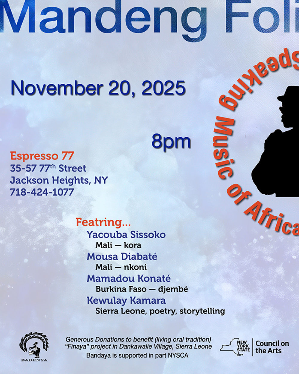 New York is home to a vibrant community of West Africans with ties to the Mande cultures of Sierra Leone, Gambia, Senegal, Mali, Guinea and beyond. That includes world class musicians and storytellers. This will be an evening with some of the best with gorgeous Mande music on kora, ngoni and balafon, and storytelling from Kewulay Kamara.