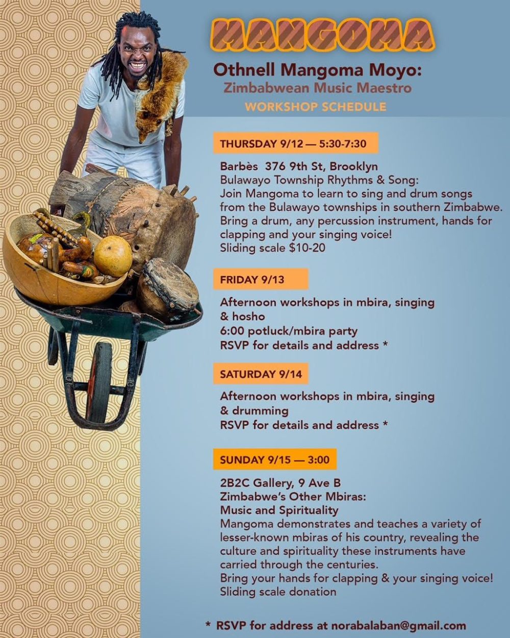 Saturday Sept 14 WORKSHOPS w/Mangoma