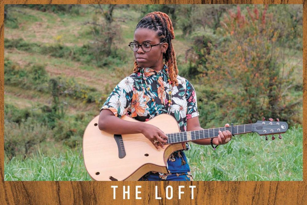 Yasmin Williams sits on her leather couch, her guitar stretched across her lap horizontally with its strings turned to the sky. She taps on the fretboard with her left hand as her right hand plucks a kalimba placed on the guitar’s body. Her feet, clad in tap shoes, keep rhythm on a mic’d wooden board placed under her. Even with all limbs in play, it’s mind boggling that the melodic and percussive sounds that emerge are made by just one musician, playing in real time. With her ambidextrous and pedidextrous, multi-instrumental techniques of her own making and influences ranging from video games to West African griots subverting the predominantly white male canon of fingerstyle guitar, Yasmin Williams is truly a guitarist for the new century. So too is her stunning sophomore release, Urban Driftwood, an album for and of these times. Though the record is instrumental, its songs follow a narrative arc of 2020, illustrating both a personal journey and a national reckoning, through Williams’ evocative, lyrical compositions.